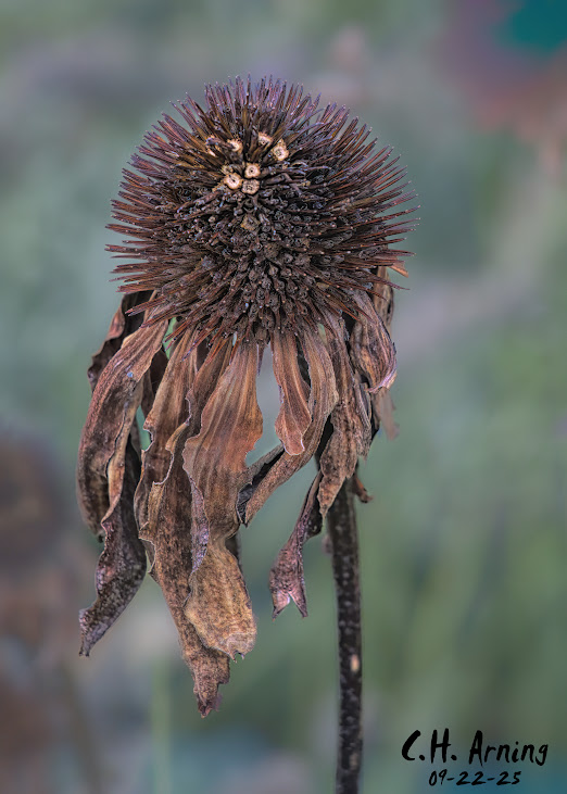 September 23, 2025September 23, 2025 Chuck Arning Time’s Mark My 09/22/25 postcard features a withered flower from a yard along Mountain Road, standing in quiet dignity, its once-bright petals now curled and brown. It captures the haunting beauty of change, reminding us that even in fading, there is grace.